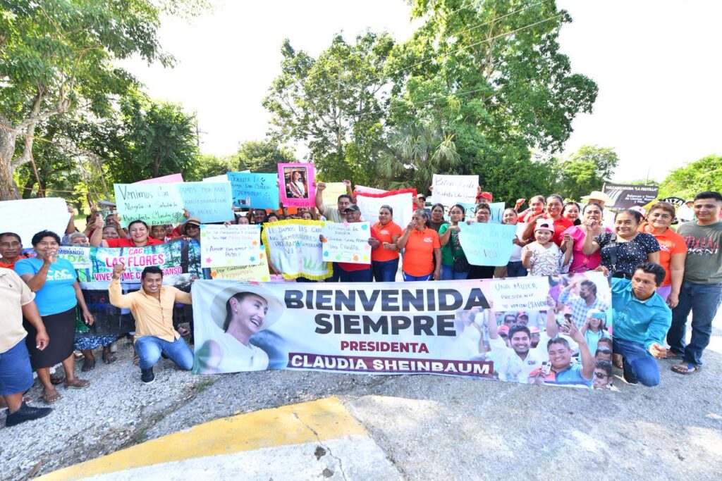 El pueblo tabasqueño siente un gran cariño por la primera Presidenta de México, @Claudiashein; hay muestras de apoyo y respaldo a cada paso durante su visita a #Tabasco, como las que recibió en el entronque ‘Los Pájaros’, en #Jonuta. pic.twitter.com/uNplEfJiZ6